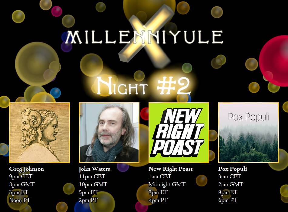I don’t do ‘chats’. I do conversations, dialogues, heart-to-hearts and head-to-heads. I think I’m going to call them ‘chat-not!s’, lest people imagine we are going to be speaking about souffle. In fact, I suspect that the appalling label ‘chat’ was introduced (uniquely) in respect of online broadcasts so as to trivialise and debase what has become, despite the label, the most profound threat to the orchestrators of evil that our sad ‘resistance’ has yet been able to manage. Here are seven hours of conversations I recorded in the past week or thereabouts, with half a dozen collaborators. The topics range from the evil deeds of feminism to the human hunger for a spiritual existence, via the putative Pyrrhic victory of the Trump/Musk cavalry, the moral collapse of Substack, the possibility of our reality being a simulation, and the curtain going up on the Third Act of the drama we’ve been engrossed and involved in for six years and counting.